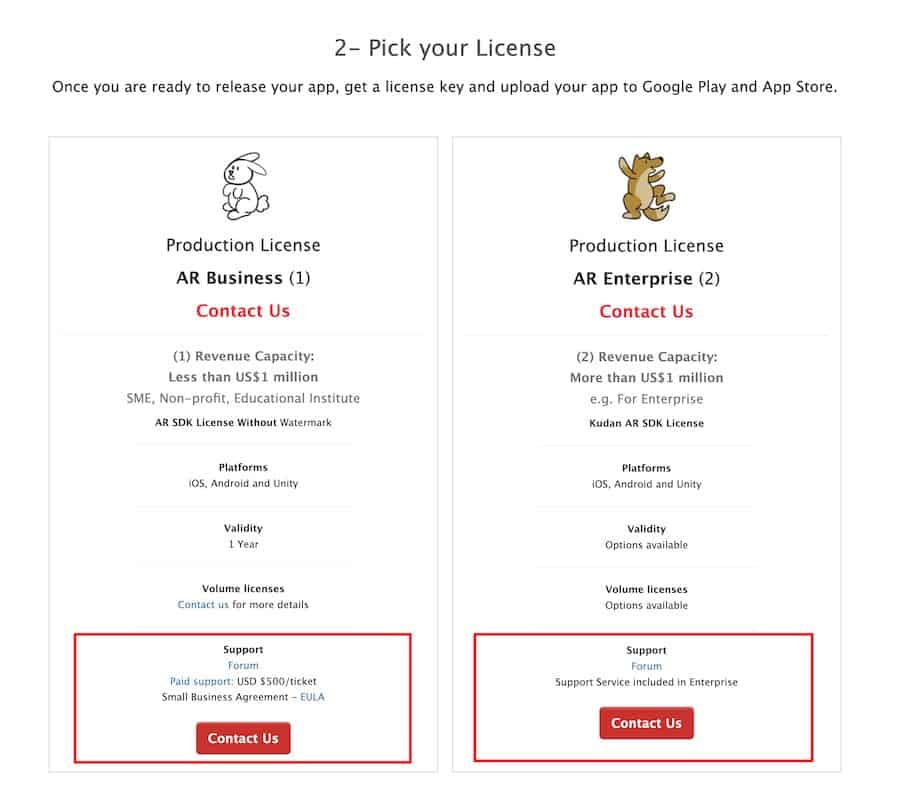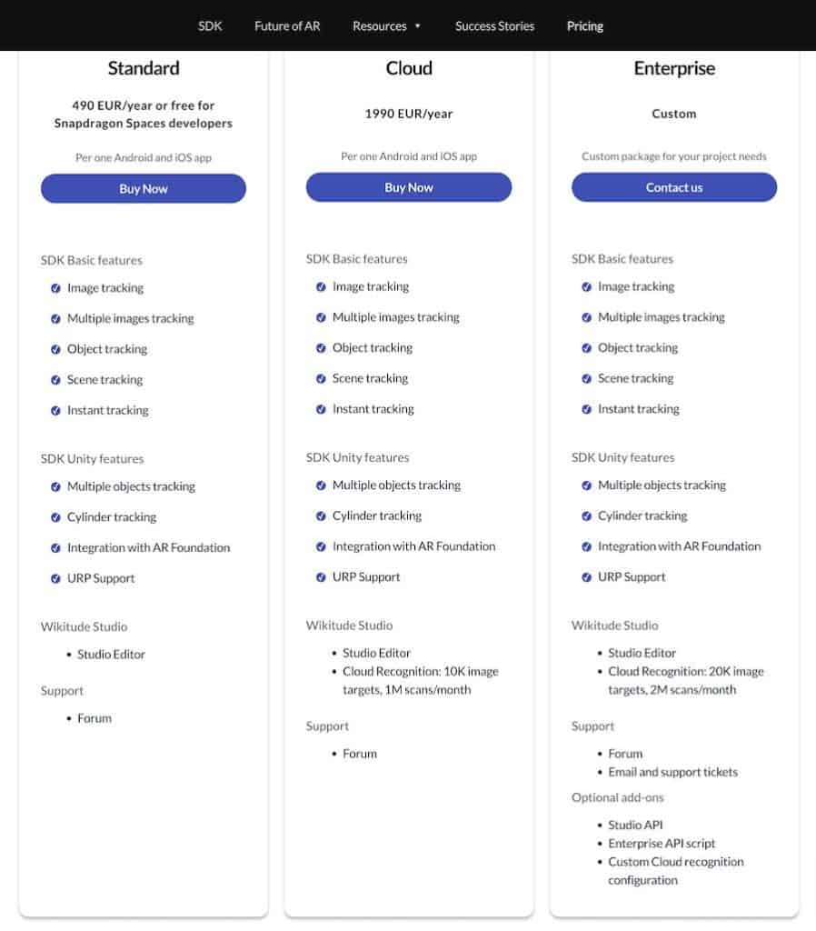 - Production License (AR Enterprise): Contact their team for more information.